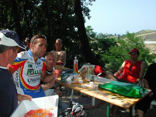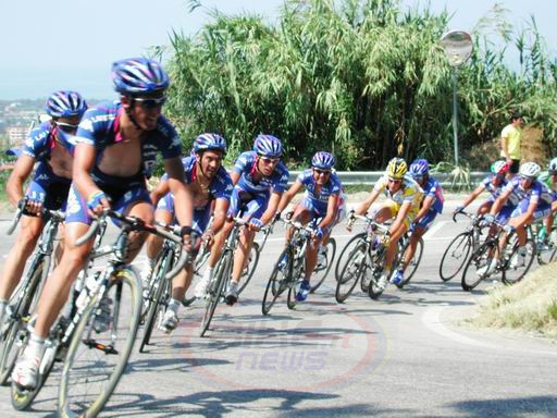 sotto l'afa di giugno, il gruppo viene guidato verso Montesilvano Colle da Crescenzo D'Amore - Acqua Sapone - e Fabio Baldato - Fassa Bortolo