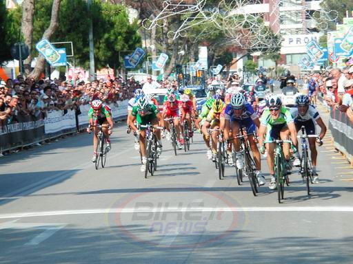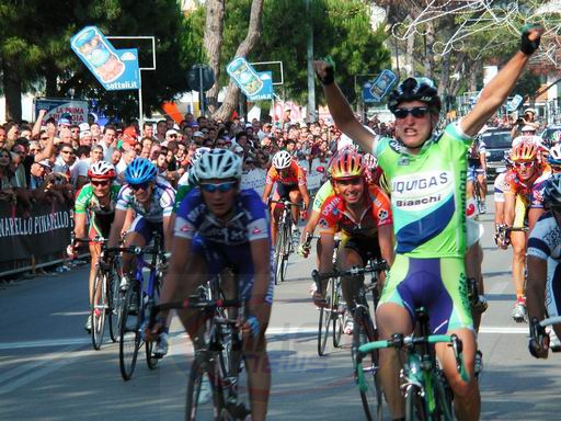 Ancora Lampre Caffita e Team Universal Caffè-Styloffice in testa con Giuseppe Di Grande - notate il curioso sprint di Commesso sulla sinistra...